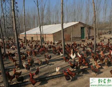 (3)养鸡场构造的场地内要有遮荫。场地内宜有翠竹、绿树遮荫及草地,以利于鸡只活动。