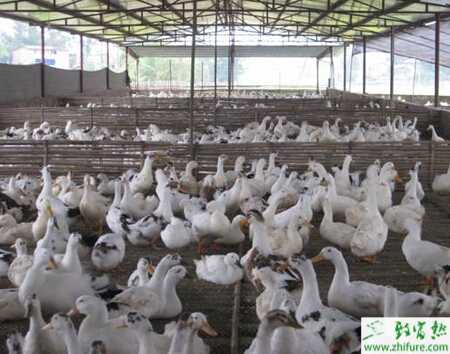 2.料槽的放置要合理。地面平养的鸭群,要尽量把料槽放得高一些,可减少饲料被拨出。