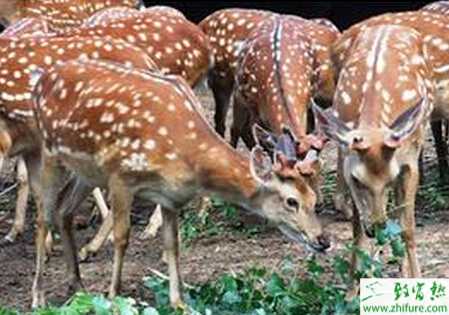 (三)营养料。鹿在其生理活动中,不能缺少的矿物质主要有钙、磷、钾、钠、氯、铁、锰、铜、锌、镁、钴和硫等。A、D、E、K等脂溶性维生素和B族、C等水溶性维生素都为鹿所必需。